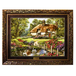تابلو فرش ماشینی طرح دستبافت مدل خانه سنگی کد 7521