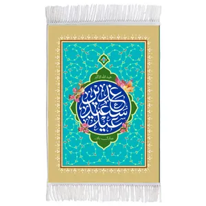 فرش ماشینی دیوارکوب اطلس آبی طرح سلام علیک محمد بن علی جواد مدل T3088