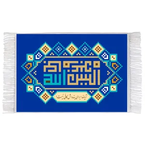فرش ماشینی دیوارکوب اطلس آبی طرح صلوات اللهم صل علی محمد وآل محمد و عجل فرجهم مدل T3123