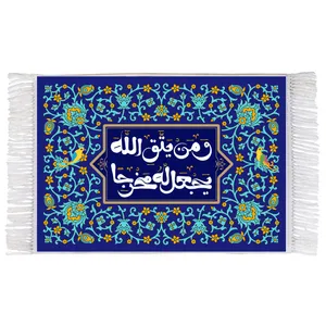 فرش ماشینی دیوارکوب اطلس آبی طرح یا من له القوه و الکمال مدل T3271