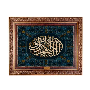 فرش ماشینی دیوارکوب اطلس آبی طرح بسم الله و الرحمن و الرحیم و الجبار مدل T3319
