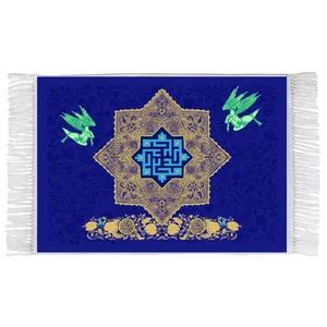 فرش ماشینی دیوارکوب اطلس آبی طرح و توکلت علی الله مدل T3352