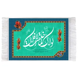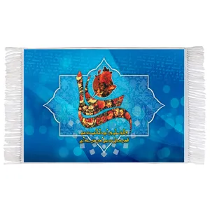 فرش ماشینی دیوارکوب اطلس آبی طرح فتوکل علی الله مدل T3356
