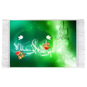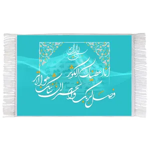 فرش ماشینی دیوارکوب اطلس آبی طرح الا بذکر الله تطمئن القلوب مدل T3384