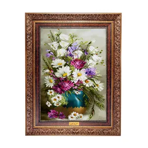 تابلو فرش ماشینی طرح دستبافت مدل گلدان گل کد 7578