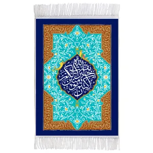 فرش ماشینی دیوارکوب اطلس آبی طرح لا حول ولا قوة الا بالله مدل T3490