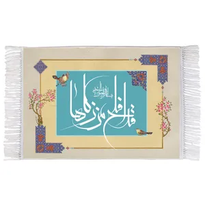 فرش ماشینی دیوارکوب اطلس آبی مدل سلام علی موسی و هارون کد T3525