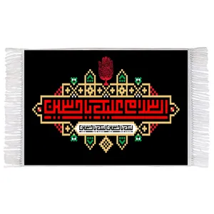 فرش ماشینی دیوارکوب اطلس آبی مدل دعای توسل یا اباالحسن یاامیر المومنین یا علی بن ابی طالب کد T3782