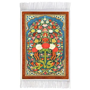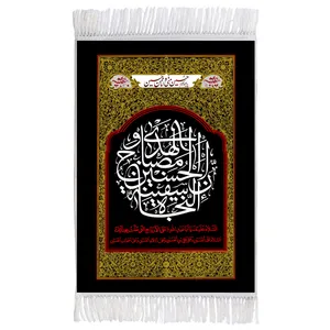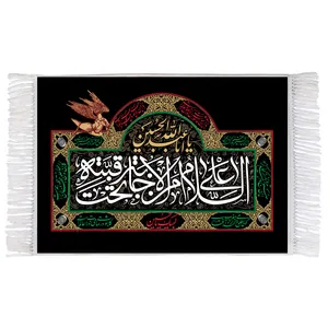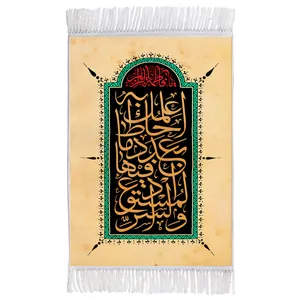 فرش ماشینی دیوارکوب اطلس آبی مدل سلام علی محمد مصطفی کد T4051
