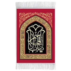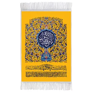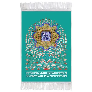 فرش ماشینی دیوارکوب اطلس آبی مدل صلوات کد T4117