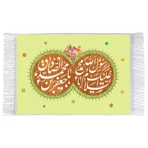 فرش ماشینی دیوارکوب اطلس آبی مدل یا ام الائمه و یک تکه ابر سوی بیابان بیاوردی قحطی عشق آمده باران بیاوردید T4309