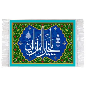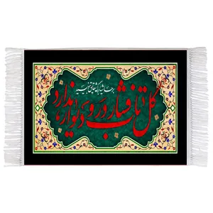 فرش ماشینی دیوارکوب اطلس آبی مدل یا علی کیف وجدت اهلک فقال نعم العون على طاعه اللَّه T4347