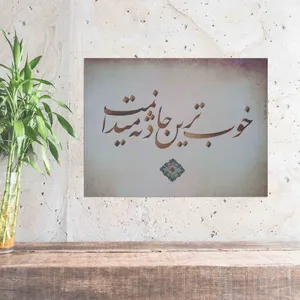 تابلو چوبی شعر مرده بدم زنده شدم گریه بدم خنده شدم،دولت عشق آمد و من دولت پاینده شدم،دیده سیر است مرا جان دلیر است مرا، زهره شیر است مرا زهره تابنده شدم .