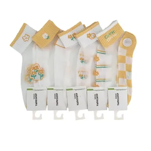 این محصول زنانه و مچی بوده و فری سایز است. زمینه جوراب به رنگ سفید بوده و قسمت پاشنه و پنجه آن خردلی است. همچنین در زمینه آن گل های خردلی بافته شده است. جنس این کالا نخ پنبه بوده و آنتی باکتریال است.
